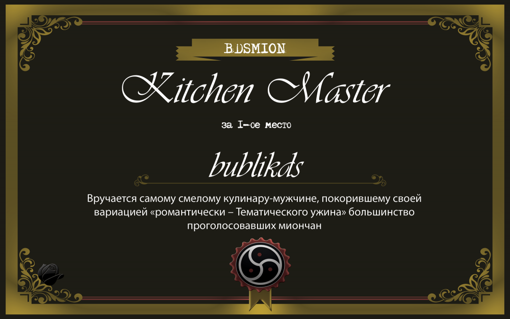 Tematik'у - особое спасибо за помощь в проведении эро-кулинарного конкурса «Kitchen Mistress». Без тебя я бы не управился.