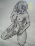 вскрикнув от боли, девушка упала на колени и на руки, ее плечи подрагивали. Досадно она не ожидала удара..."с ним надо быть внимательнее", взглянула на охотника взглядом полным обиды, затем опустила глаза в пол, села на ноги, руки положила на колени. она помнила как нужно себя вести, хоть много времени прошло, так как сейчас шкура не прикрывала ее бедра на бедре можно было различить Клеймо: латинская буква N сложенная из мечей, заметив это она шустро его прикрыла куском ткани.