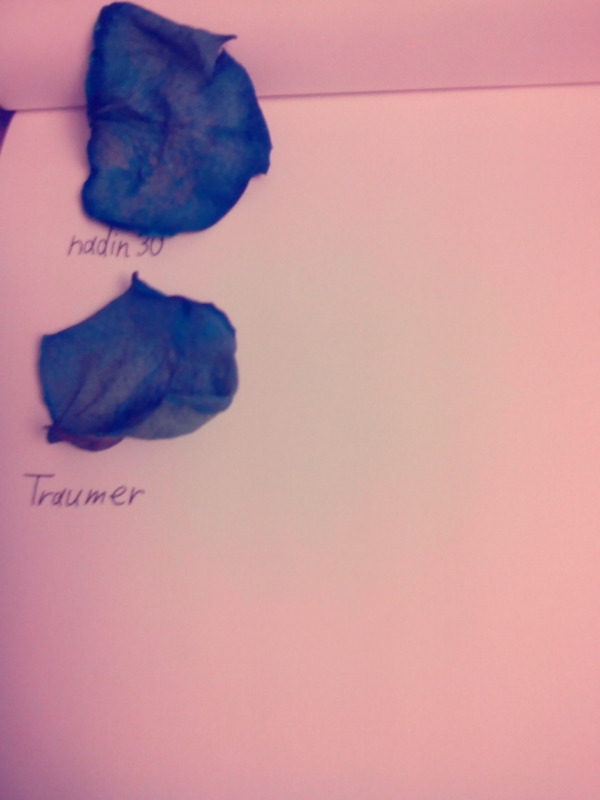 Сжимая в руке помаду, вижу женщину в глазах гостя. Она сидит глубоко внутри и, получив некое подобие силы в этой комнате, рвется наружу. Понимающе улыбаюсь, кладу палец на губы Traumer'a и в том же вихре исчезаю. На моем месте остается лишь синий лепесток.
