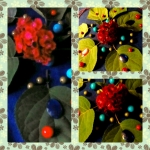 Исполнение произвольное: это может быть одежда на вас, рисунок, описание, натюрморт, фото - всё, где гармонично уживаются красный, синий и зелёный.