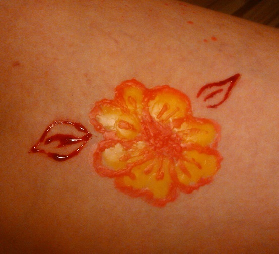 А у меня уже готовый рисунок на теле имеется, я лишь добавила чуть-чуть цвета и несколько горячих капель воска.))