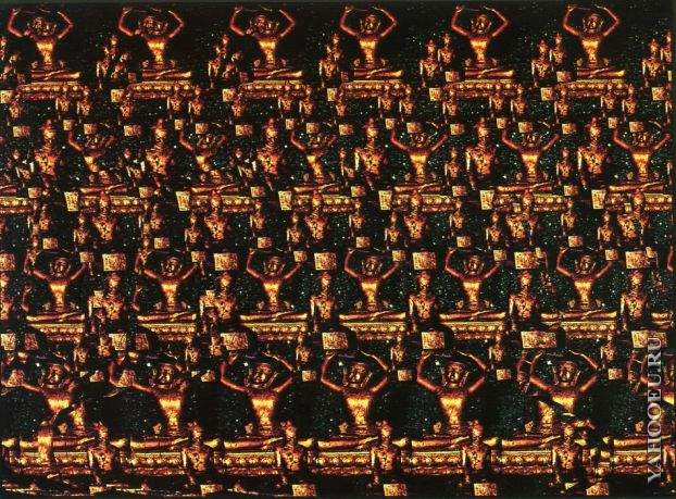 Интересная техника картинок, как в кинотеатре три Д. Встречал книгу с такими картинками, потратил немало времени, чтобы научиться их видеть ))
