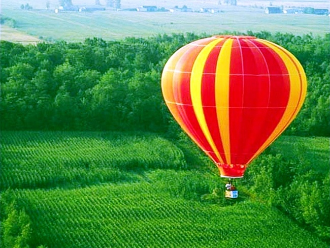 На большом воздушном шаре мандаринового цвета,