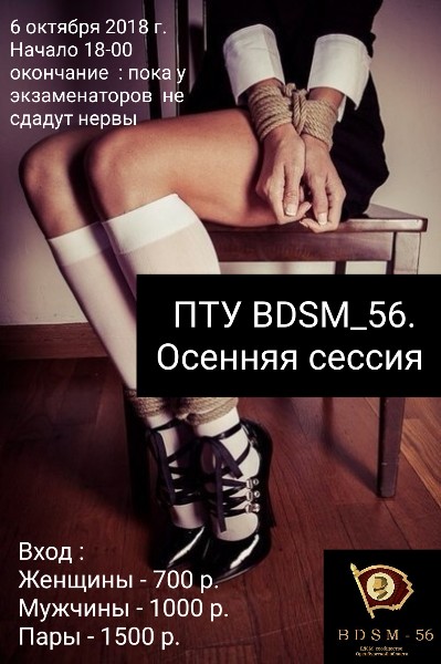 Организаторы клуба BDSM_56 приглашают на вечеринку "ПТУ BDSM_56. Осенняя сессия"