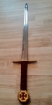 Спасибо, рад что Вам понравилось. Да, на навершие стилизованный тамплиерский крест, на лезвии - моё имя.